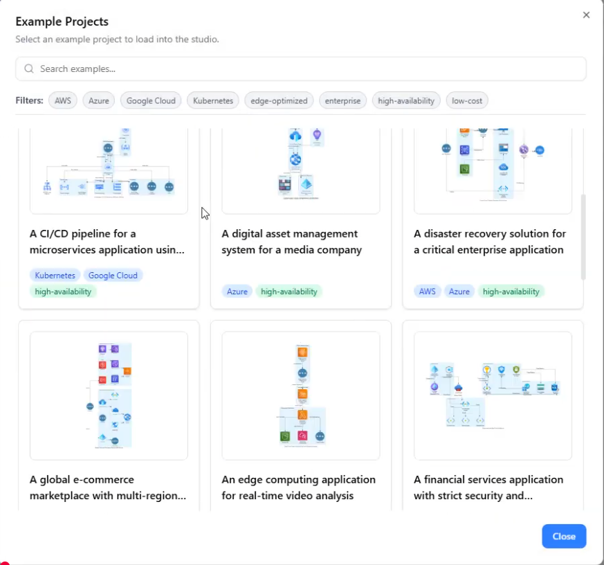 Whether you are designing for AWS, Azure, Google Cloud, or other major providers, this studio streamlines the workflow, automating design creation, guiding technical decisions, and generating ready-to-use documentation.