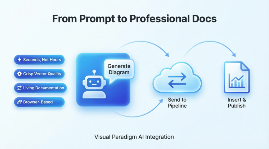 As a technical writer and systems analyst who has tested dozens of documentation tools over the years, I’ve grown skeptical of “AI-powered” promises that sound too good to be true. When Visual Paradigm announced their new integration allowing users to send AI-generated diagrams directly from their Chatbot to OpenDocs via the Pipeline feature, I decided to take it for a real-world spin. Over the past few weeks, I’ve used this workflow to document a microservices architecture project and a customer onboarding process. Here’s my unbiased, experience-based guide to what this integration actually delivers—and where users should set realistic expectations.