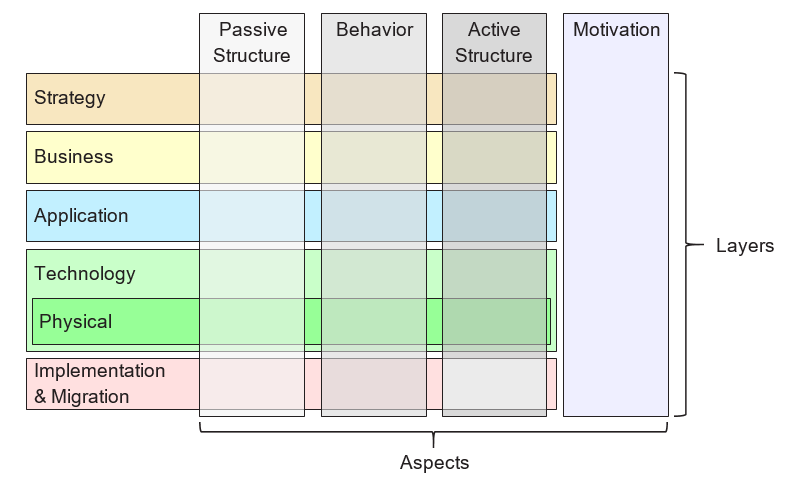 - Camada de Tecnologia: Cobre a infraestrutura de tecnologia, incluindo componentes de hardware, software e rede que sustentam a camada de aplicativos.